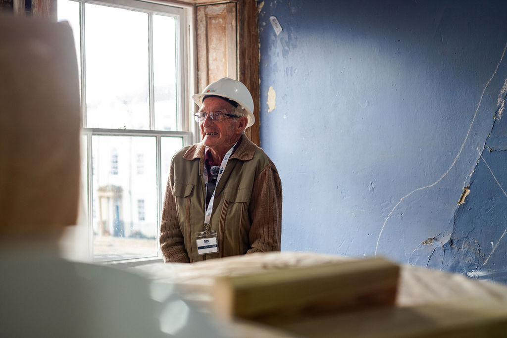 Pictured in one of the upstairs rooms in 204, to be part of the holiday let once phase 1 has been completed, is 93-year-old Lewis King, a former resident of 2-4.